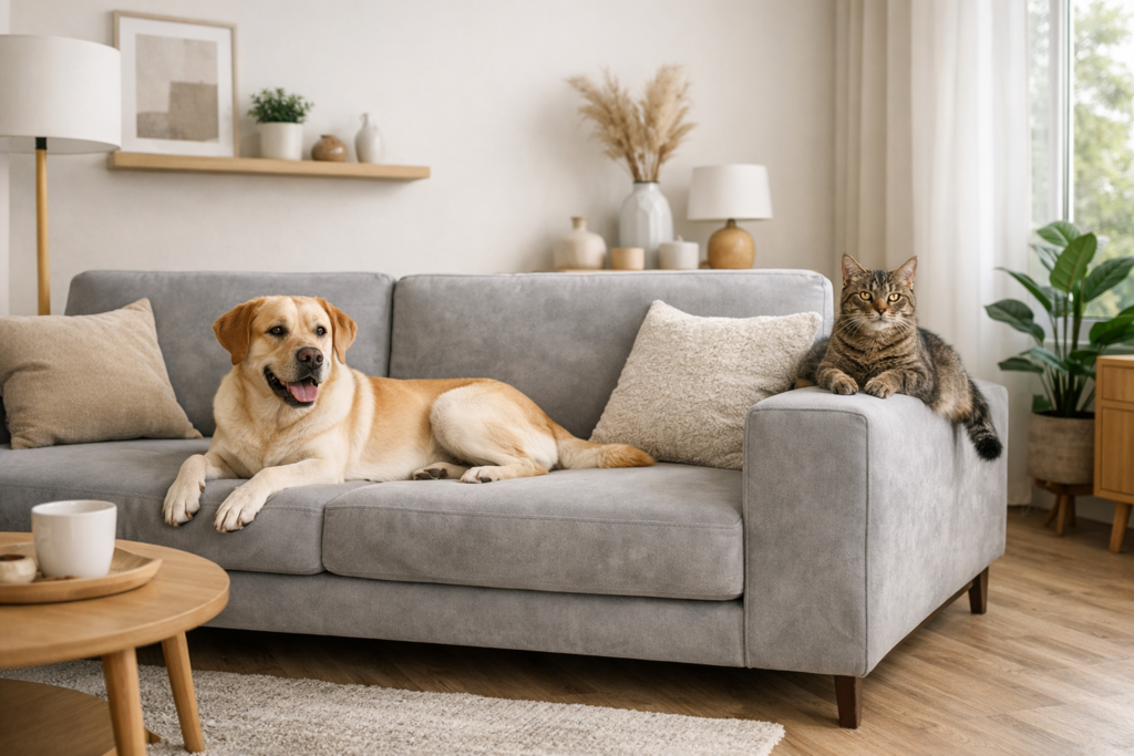 | Когда в доме живет кот или собака, мебель приходится выбирать по другим правилам. Важны уже не только форма, цвет и цена, но и то, насколько обивка выдерживает когти, легко ли убрать шерсть, останутся ли следы от лап и не потеряет ли диван вид через несколько месяцев обычной жизни с питомцем.