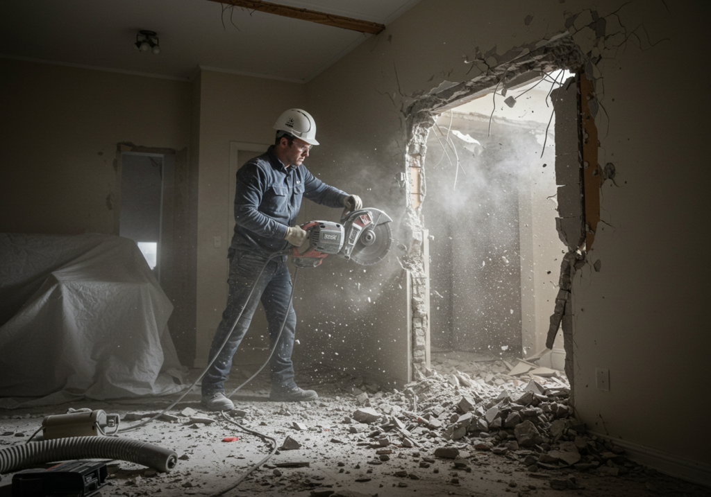 Важно понимать, что каждый из этих видов работ имеет свою специфику. Например, демонтаж бетонных конструкций требует использования профессионального инструмента (перфораторы, отбойные молотки, алмазная резка), а разбор старых полов может быть связан с пылью, шумом и большим объемом строительного мусора.